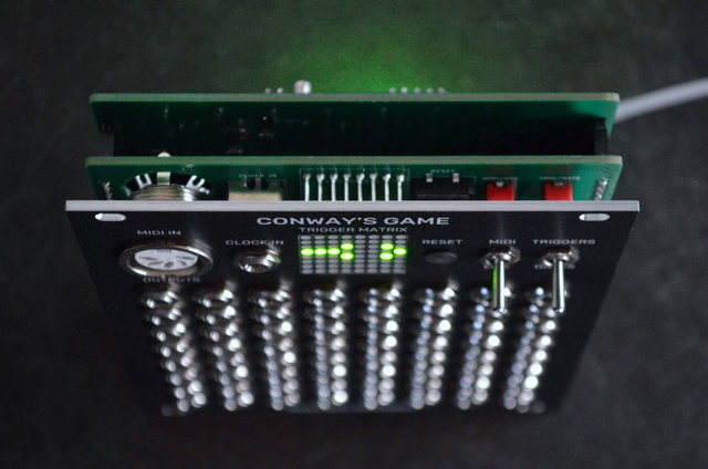 A cellular automaton pattern generator that also functions as a MIDI to trigger converter.